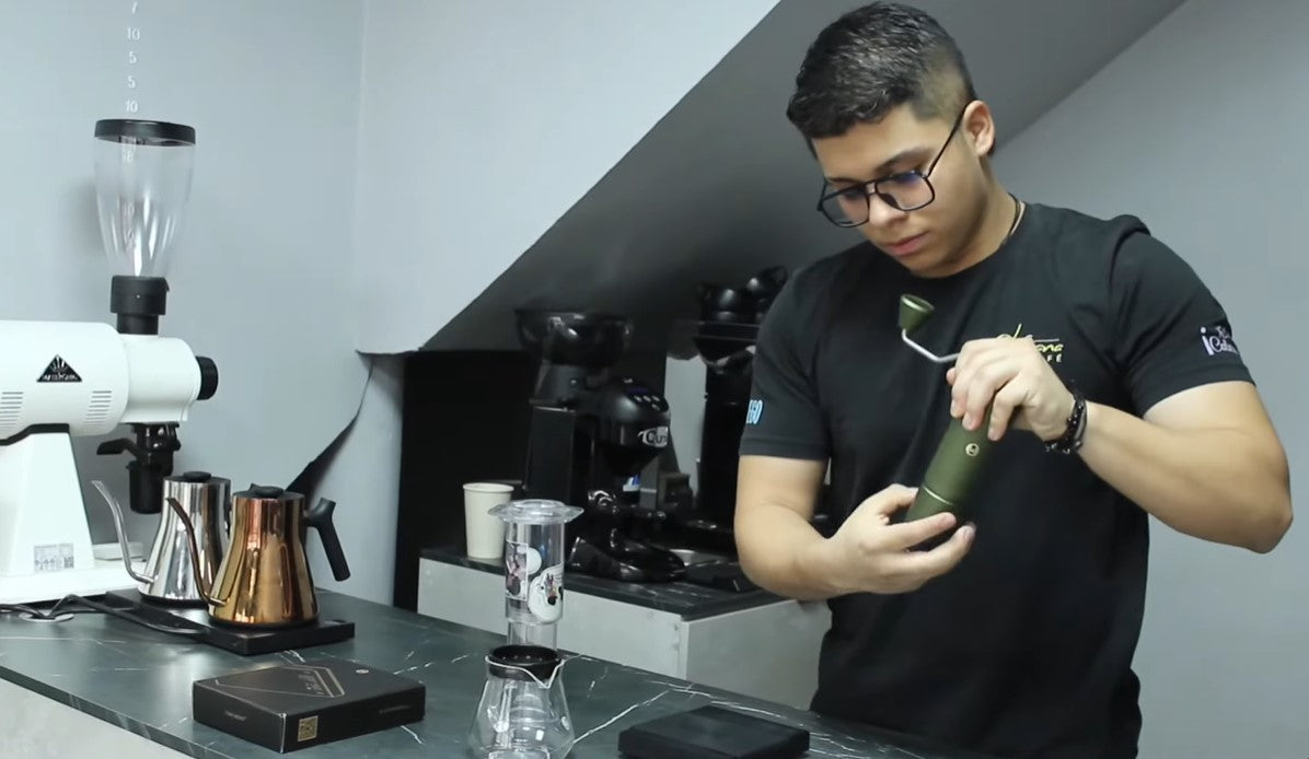 Se tomo nuestra barra JUAN DIEGO campeón nacional 2023 para enseñarnos su receta exacta que lo volvió campeón.Toma nota atentamente para que puedas replicarla en casa. Es una receta sencilla, versátil y en donde solo necesitaras un buen molino manual, gramera y tetera. Así como Juan, creemos que la simplicidad en la receta acerca cada día más al publico a tomar cafés de especialidad.